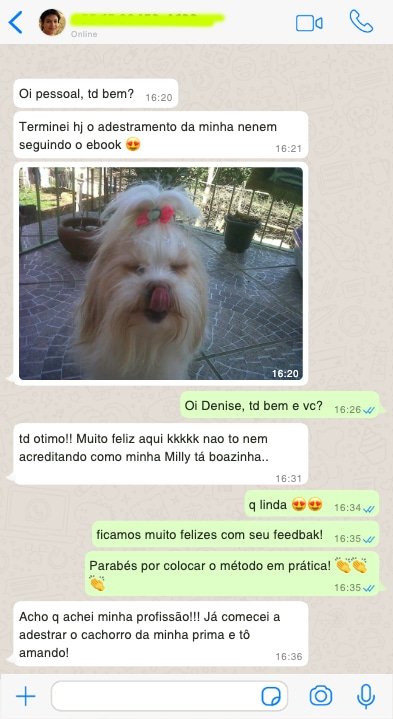 É um guia de adestramento canino passo a passo que vai te ajudar a conseguir o resultado que você sempre quis com apenas 20 minutos por dia, sem precisar de um adestrador profissional. Você vai ver em poucos dias seu cão mais educado, obediente, sociável com as visitas e outros animais.